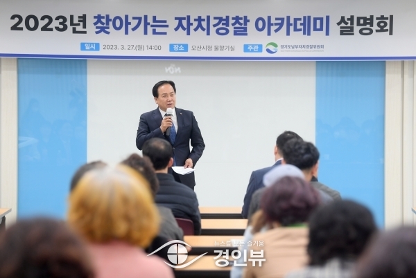 (경인뷰) 오산시와 경기남부자치경찰위원회는 지난 27일 시청 물향기실에서 자치경찰제의 관심있는 주민들을 대상으로 ‘찾아가는 자치경찰 아카데미’를 개최했다고 밝혔다.