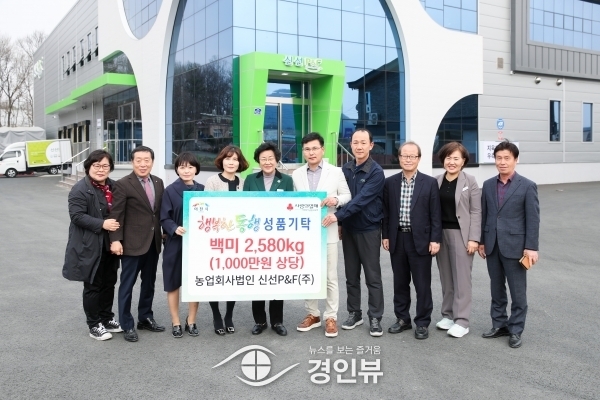 (경인뷰) 농업회사법인 신선피엔에프에서 이천시의 어려운 이웃들을 위해 백미 10kg 303포를 이천시 이웃돕기사업 행복한 동행에 기탁해왔다.