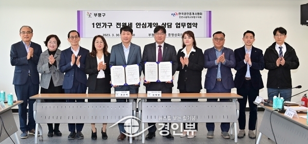 (경인뷰) 부평구는 지난 30일 구청 영상회의실에서 한국공인중개사협회 인천시 부평구지회와 1인 가구 전월세 안심계약 상담서비스를 운영하기 위한 업무협약을 체결했다.