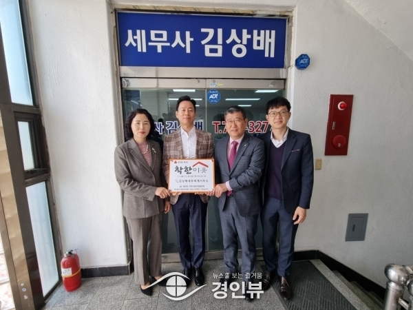 (경인뷰) 광주시 경안동지역사회보장협의체는 지난달 30일 김상배세무회계사무소를 방문해 지역 내 나눔 문화 활성화에 대한 감사의 표시로 ‘아름다운 나눔 이웃’현판을 전달했다.