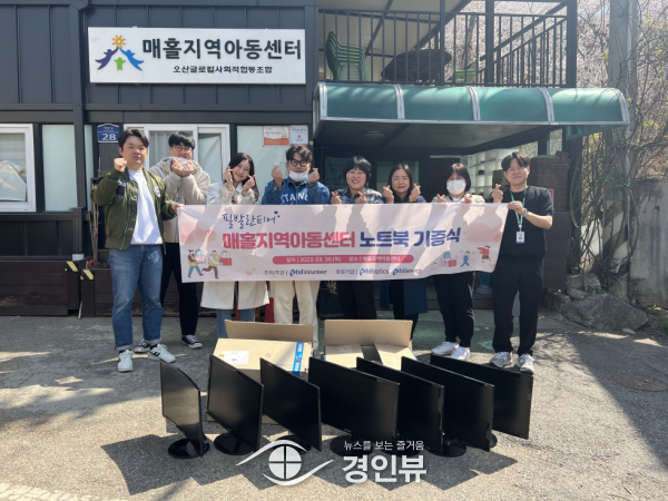 (경인뷰) 오산시 필발란티어 봉사단체가 지난 30일 어린이 교육 발전을 위해 써달라며 매홀지역아동센터에 노트북 7대를 기부했다.