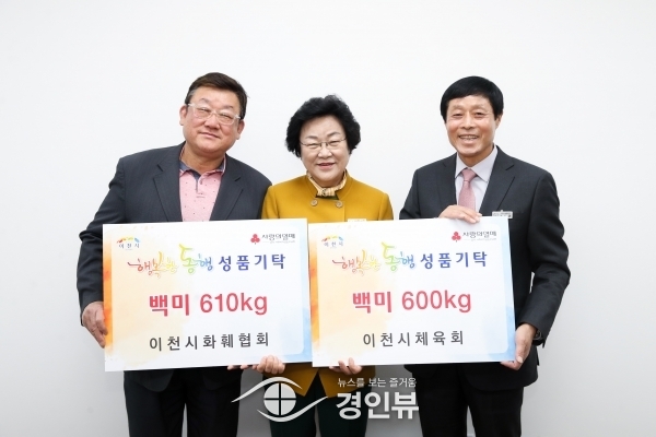 지난 3일 이천시체육회에서 백미 600kg, 이천시화훼협회에서 백미 610kg을 기부하며 지역사회 나눔문화확산을 위한 기부에 적극 동참했다.