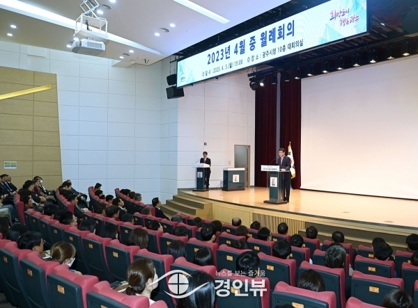 (경인뷰) 광주시가 지난 3일 시청 대회의실에서 4월 월례 회의를 개최했다.