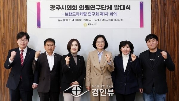 (경인뷰) 2023년도 광주시의회 의원연구단체로 등록한 ‘브랜드마케팅 연구회’가 지난 10일 최서윤 대표의원과 소속의원인 주임록, 허경행, 황소제, 이주훈, 노영준 의원이 참석한 가운데 발대식을 개최했다.