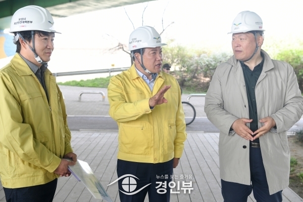 (경인뷰) 이권재 오산시장이 최근 성남시 정자교 보행로 붕괴사고로 2명의 사상자가 발생한 것과 관련, 유사 사고 예방을 위해 지난 14일 관내 누읍동 탑동대교를 찾아 긴급 안전점검에 나섰다.