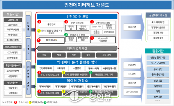 이를 위해 시는 지난해 인천데이터허브 구축을 위한 정보시스템 마스터플랜을 수립하고 인천데이터허브 구축의 발전 방향성과 목표시스템을 설계했으며 최근 인천데이터허브 구축 1단계 사업을 발주했다.