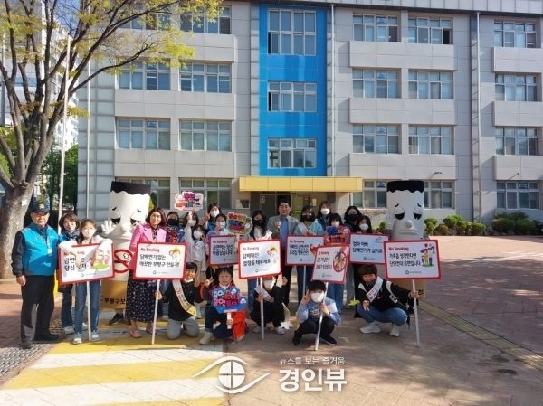 (경인뷰) 부평구가 지난 19일 삼산초등학교 정문에서 전교생과 교사, 학부모를 대상으로 등굣길 흡연 예방 캠페인을 진행했다.