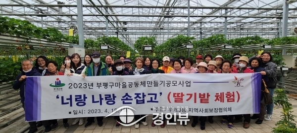 (경인뷰) 부평구 부개3동 지역사회보장협의체는 지난 18일 홀몸노인을 대상으로 ‘너랑 나랑 손잡고’ 사업 중 두 번째로 딸기농장 체험행사를 진행했다.