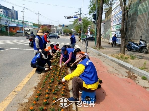(경인뷰) 바르게살기운동 광주시협의회 회원들이 지난 14일 탄벌동 일대에서 ‘봄맞이 꽃길 가꾸기 및 환경정화 활동’을 실시했다.