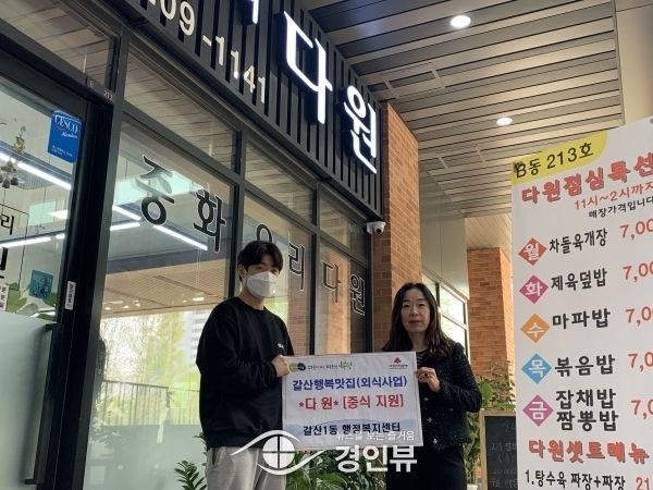 남점숙 갈산1동장은 “지역 내 지역자원의 기부 활성화에 힘써준 관계자께 다시 한번 감사하다”며 “어르신들이 편안하게 혼자서 외식을 즐기셨으면 한다”고 말했다.