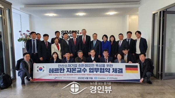 (경인뷰) 안산시는 지난 19일 독일의 저명한 경영학자 헤르만 지몬 박사와 관내 중소기업을 우량 강소기업으로 육성하기 위한 컨설팅 업무협약을 체결했다고 20일 밝혔다.