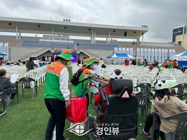 (경인뷰) 이천시 자율방재단은 지난 20일 이천시 공설운동장에서 개최된 제43회 장애인의 날 기념행사의 원활한 진행을 위해 행사 지원 봉사활동을 실시했다.
