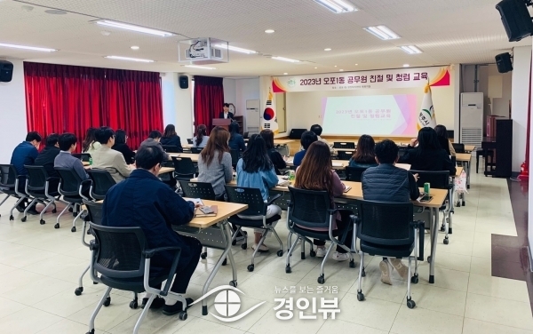 (경인뷰) 광주시 오포1동 행정복지센터는 19일 공무원들의 민원서비스 향상을 위한 민원 친절교육을 실시했다.