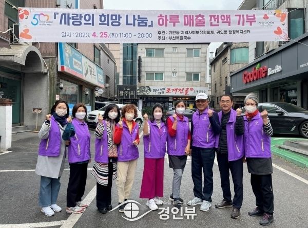 귀인동 먹자골목에 위치한 부산복칼국수는 4월 25일 하루 매출 전액을 이웃돕기 성금으로 기부하는 ‘사랑의 희망 나눔’ 행사를 진행해 성금 688만원을 경기도사회복지공동모금회에 기부했다고 밝혔다.