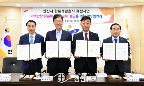 (경인뷰) 안산시는 지난 27일 안산지역 향토음식을 홍보하고 대표 먹거리로 육성하기 위해 향토개발음식 바고찌 보급 업무협약을 체결했다고 28일 밝혔다.