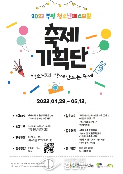 (경인뷰) 부평구 청소년수련관은 오는 13일까지 2023 부평 청소년페스티벌 축제기획단을 모집한다.