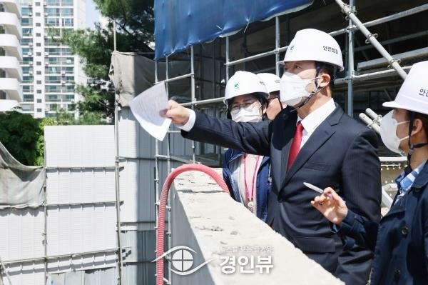 (경인뷰) 김성제 의왕시장이 3일 의왕시 오전커뮤니티센터 신축공사장을 찾아 현장을 점검했다.