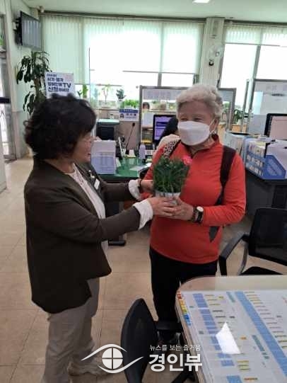 카네이션은 창전동 새마을지도자 정춘화 총무의 후원으로 90여분의 독거 어르신에게 카네이션 화분을 전달하게 됐다.