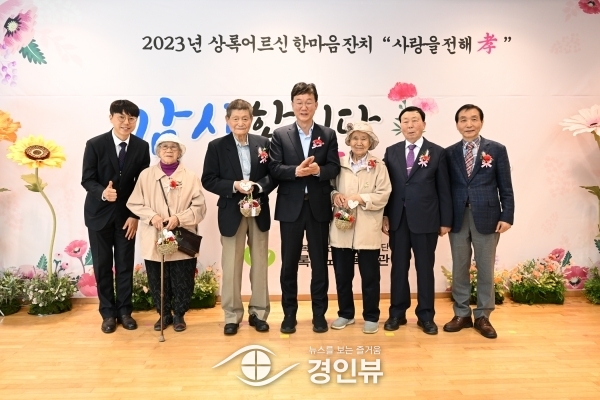 코로나19로 4년 만에 대면으로 열린 이번 행사에서 노인복지 유공자에게 표창을 수여하고 어르신들에게 감사의 카네이션을 달아드린 뒤 노고에 감사를 표하는 시간을 가졌다.