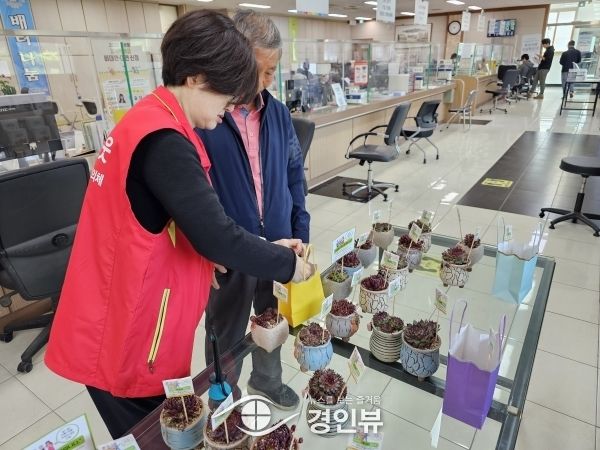 (경인뷰) 이천시 대월면 지역사회보장협의체에서 8일 어버이날을 맞아 직접 심은 다육이 50개를 관내 어르신에게 전달했다.