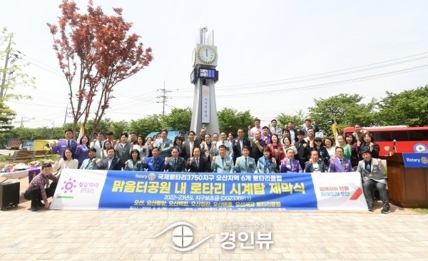 (경인뷰) 오산시는 국제로타리 3750지구 오산지역 6개 로타리클럽이 지난 8일 맑음터공원에서 나눔과 봉사 실천을 위한 시계탑 건립 제막식을 개최했다고 전했다.
