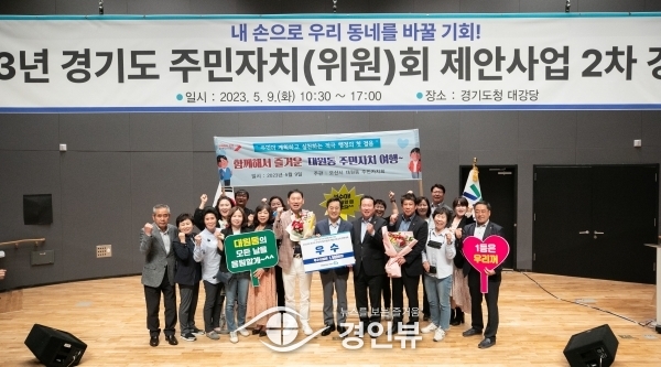 (경인뷰) 오산시 대원동 주민자치회가 지난 10일 경기도청 대강당에서 개최된 ‘2023년 경기도 주민자치회 제안사업 2차 경연대회’에 ‘함께해서 즐거운 주민자치 여행’이라는 발표주제로 우수상을 받았다.
