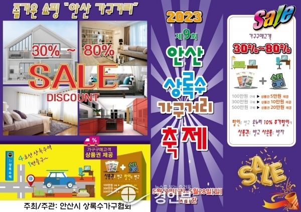상록수가구협회가 주최·주관하는 이번 행사는 상록수가구거리 일대 41개 가구점이 참여하며 축제 기간 내 최대 80%까지 할인된 가격으로 가구를 구입할 수 있다.