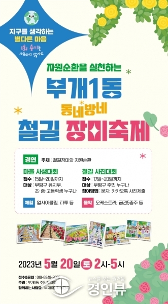 (경인뷰) 부평구 부개1동 주민자치회가 오는 20일 부개1동 철로 변에서 2023년 자원순환을 실천하는 동네방네 철길 장미 축제를 진행한다.