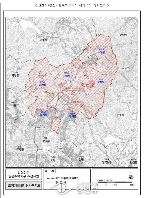 (경인뷰) 안산시는 부곡·수암·양상·장상·장하·월피·신길동 등 관내 공공택지 및 인근 18.72㎢ 일원을 토지거래허가구역으로 재지정했다고 15일 밝혔다.