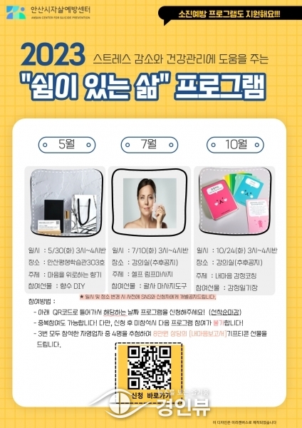신청은 관내 자영업자나 자영업 관련 종사자라면 안산시자살예방센터 누리집이나 공식 인스타그램을 통해 접속한 뒤 QR코드로 접수하면 된다.