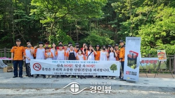 (경인뷰) 의왕시 청소년방과후아카데미는 5월 13일 청계산에서 의왕소방서와 함께 ‘산속 노담, 일상 속 노담’을 위한 산불예방 ‘NO담’캠페인을 진행했다.