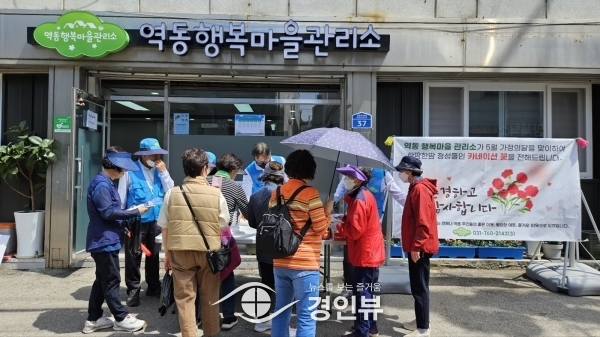 역동 행복마을관리소는 8일 어버이날을 기념해 카네이션 뜨개를 만들어 지역 어르신 50여명에게 전달했고 무료 카네이션 뜨개 강좌를 열어 젊은 주민들의 큰 호응을 얻기도 했다.
