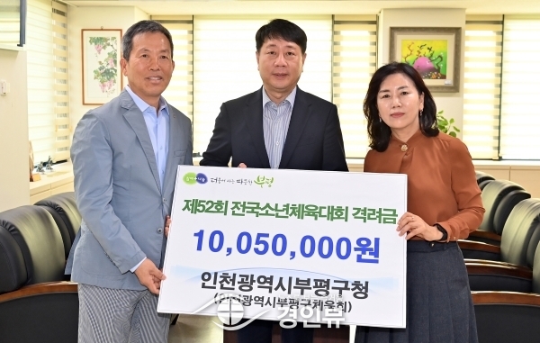 (경인뷰) 부평구는 지난 15일 구청장 집무실에서 제52회 전국소년체육대회 출전 선수단에 대한 격려금 전달식을 진행했다.