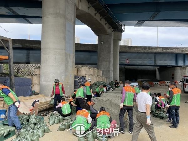 (경인뷰) 의왕시 자율방재단이 태풍·집중호우로 인한 침수피해 사고 예방에 사용할 수방용 모래주머니 3천 개를 제작했다고 16일 밝혔다.