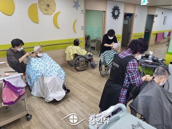 (경인뷰) 안산시는 지난 16일 대한미용사회중앙회 상록구·단원구지부 회원이 요양원, 장애인복지관 등 시설 입소 어르신을 대상으로 미용 재능 나눔 봉사 활동을 실시했다고 18일 밝혔다.