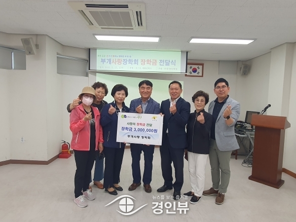 이태규 부개사랑장학회 회장은 “경제적으로 어려운 시기에 장학금을 모금해준 회원들에게 감사하며 국가의 미래인 우리 학생들의 학업에 조금이나마 보탬이 돼 기쁘다”며 “앞으로도 더 많은 장학금이 지급되도록 노력하겠다”고 말했다.