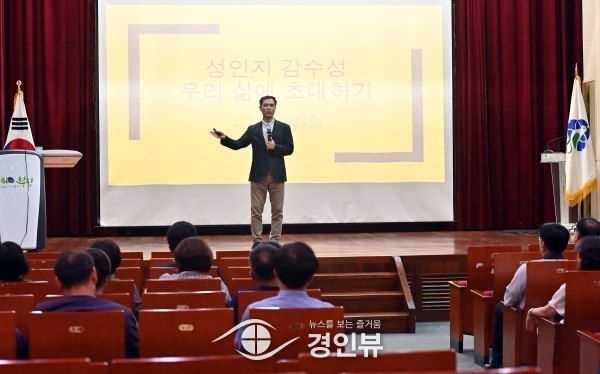 이번 교육에는 정재훈 에코페미 인권교육센터 숨 대표가 강사로 나서 성인지 감수성 언어의 이해, 공직자 인식 개선, 4대 폭력 예방, 대처능력 향상 등을 중심으로 강연했다.