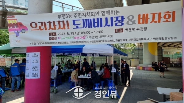 (경인뷰) 부평구 부평3동 주민자치회는 지난 19일 백운고가 하부 백운역 북광장에서 주민 300여명이 참여한 가운데 ‘으라차차 도깨비 시장’ 바자회를 진행했다.