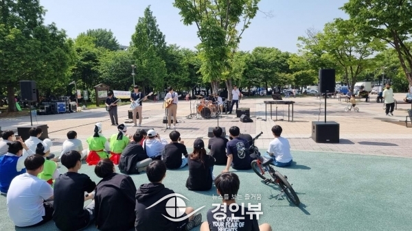 (경인뷰) 부평3동 주민자치회는 지난 20일 부평공원에서 ‘2023 끼 있는 부평3동 사람 모여라’ 버스킹 공연을 진행했다.