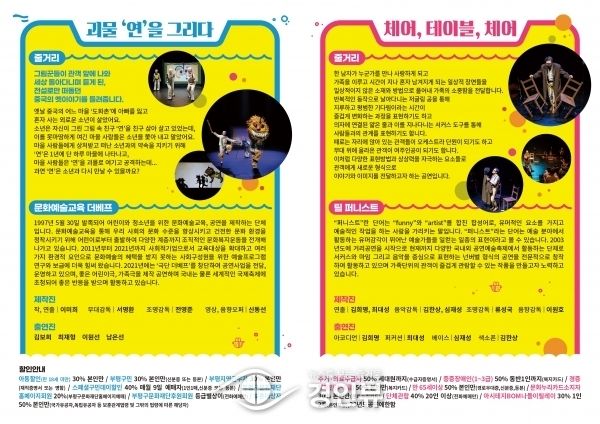 (경인뷰) 부평구문화재단은 다음달 22~24일 부평아트센터에서 어린이 해방선언 100주년과 어린이날 101주년을 기념해 특별공연 ‘체어,테이블,체어’와 ‘괴물 ‘연’을 그리다’를 선보인다.