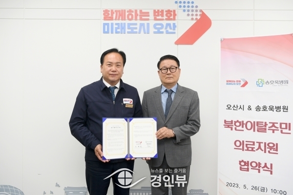 (경인뷰) 오산시는 26일 시장 집무실에서 북한이탈주민의 건강증진 및 의료지원을 위해 송호욱 병원과 업무협약을 체결했다고 밝혔다.