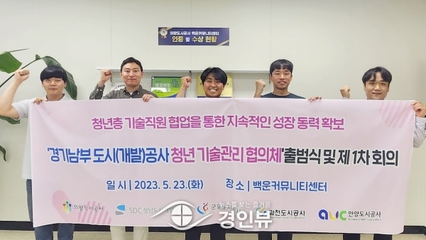 (경인뷰) 의왕도시공사는 지난 5월 23일 의왕 백운커뮤니티센터에서 4개 기관 청년 직원들과 ‘경기남부 도시공사 청년 기술관리 협의체’출범식을 개최하고 1차 정기회의를 진행해 협의체 구축 결의를 다졌다고 밝혔다.