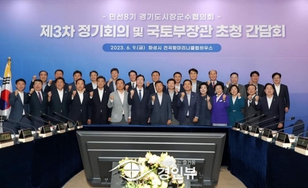 (경인뷰) 방세환 광주시장이 9일 화성시 전곡항마리나클럽하우스에서 열린 ‘경기도시장군수협의회 제3차 정기회의 및 국토교통부 장관 간담회’에 참석해 원희룡 국토부장관에게 광주시 주요 현안사항을 전달하고 신속한 검토와 협조를 요청했다.
