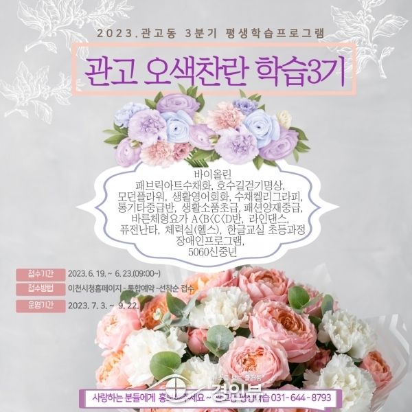 (경인뷰) 이천시 관고동 평생학습센터는 2023년도 관고동 3분기 평생학습 프로그램 수강생 모집 20개반 351명 프로그램 운영계획을 밝혔다.
