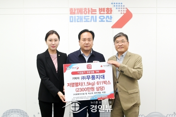 이권재 오산시장은 “기탁 물품은 우리 시의 어려운 이웃들에게 큰 도움이 될 것”이라며 “이웃들을 위한 따뜻한 나눔을 실천해주신 ㈜무풍지대에 진심으로 감사드린다 앞으로도 우리시는 지역사회 발전을 위해 더욱 노력하겠다”고 전했다.
