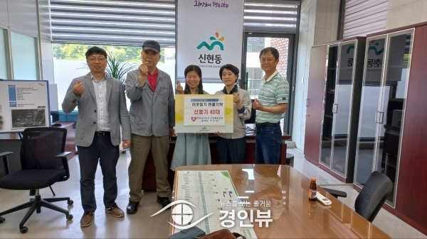 (경인뷰) 한국남동발전 분당발전본부 직원들은 13일 폭염에 취약한 이웃을 위해 선풍기 40대를 신현동행정복지센터에 기탁했다.
