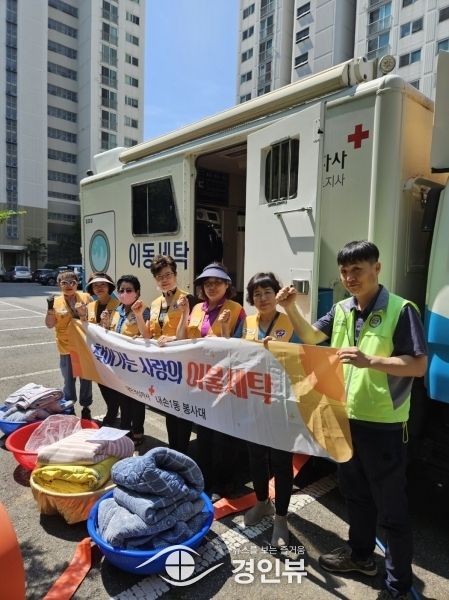 (경인뷰) 대한적십자사 내손1동 봉사대는 지난 13일 의왕내손 주공아파트관리소와 합동으로 ‘찾아가는 사랑의 이불세탁’사업을 실시했다.