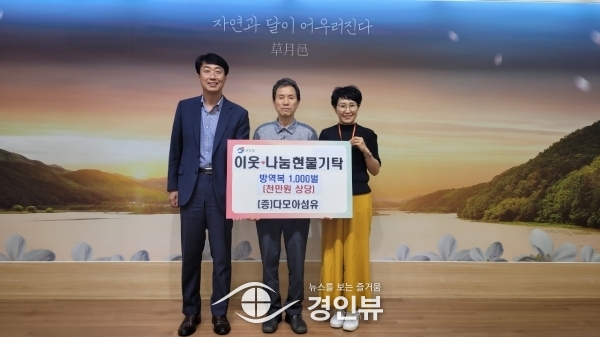 (경인뷰) 광주시 초월읍 쌍동리에 위치한 지역기업 다모아섬유는 축산농가를 위해 방역복 1,000벌을 초월읍행정복지센터에 기탁했다고 14일 밝혔다.