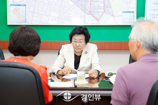 (경인뷰) 김경희 이천시장이 13일 일곱 번째 ‘김경희 시장의 사이다 토크’를 위해 창전동을 방문했다.