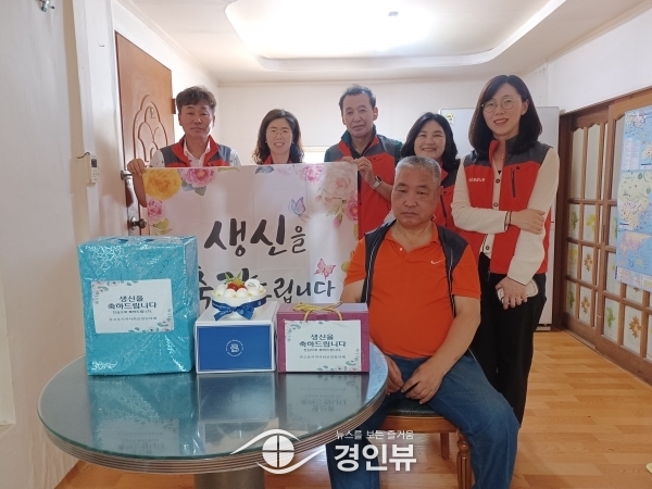 (경인뷰) 2023년 관고동지역사회보장협의체에서 저소득 심한 장애인을 대상으로 가구를 직접 방문해 생일 케이크와 선물을 전달하는“이어줌 생일”사업을 6월 14일에 실시했다.
